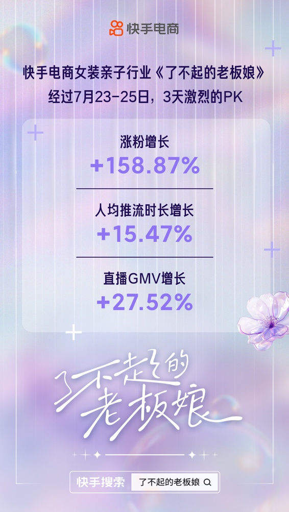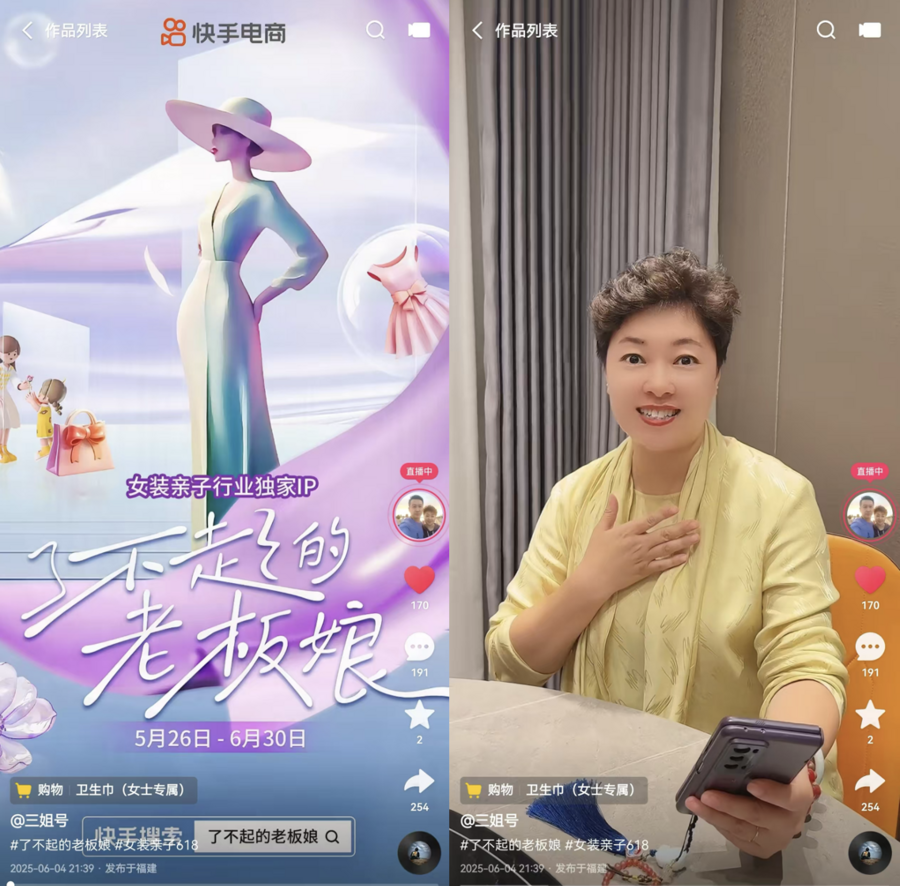 为打造更多更有影响力的老板娘,今年618期间,快手电商女装亲子行业推出了“了不起的老板娘”活动,将持续带来各类活动玩法和扶持资源。目前,活动迎来收官之战,来自时尚买手派、平价搭配官、极简生活家、小众设计师四大赛道的12名老板娘,经过3天决赛,依据涨粉量、AI海报视频播放量、直播GMV等综合成绩评定,最终由@三姐号、@甜豆家、@欲倾城、@唯品购大漂靓 组成的战队摘得桂冠。
