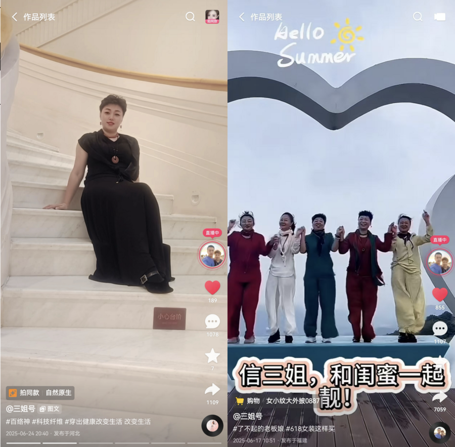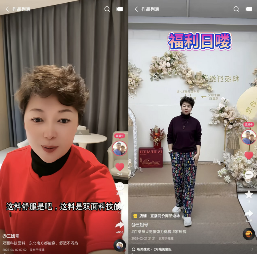 三姐的粉丝大多是40-65岁的女性用户,“跟我属于同个年龄段,到了这个岁数觉少起得早,买衣服也更关注产品的品质和上身的舒适度”。