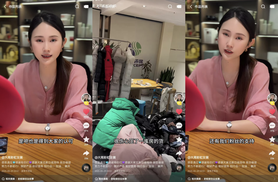 但2019年突如其来的意外,让大雨夫妇在山西、河北等地经营的八家线下档口几乎陷入绝境。“每天睁眼就亏两三万”,回忆起当时的境况,大雨仍心有余悸。两千多万元的冬装积压在仓库,曾是骄傲的千平展厅成了沉重负担。