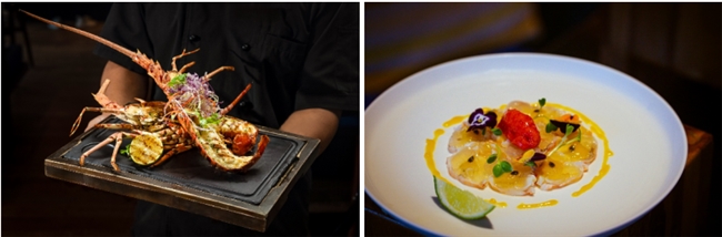 在度假酒店备受赞誉的海鲜餐厅 Blu Lobster,新鲜捕捞的龙虾以当地香草与香料精心烹制,呈现层次丰富而纯粹的地道风味。其他招牌菜式还包括:芽庄风味海蜇沙拉、甘林芒果鲜虾沙拉、香茅姜炒血蛤,以及搭配 Luk Lak 酱汁的炒鱿鱼等。